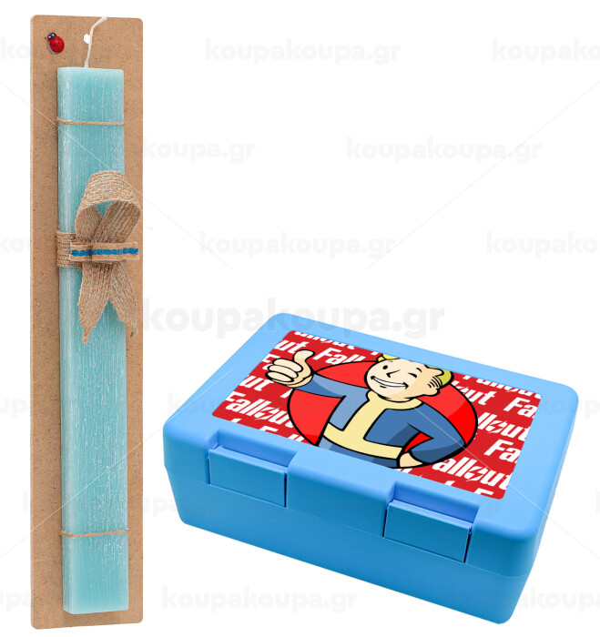 Fallout Vault Boy, Easter Set, children's snack container BLUE & Easter aromatic flat candle (30cm) (TURQUOISE)