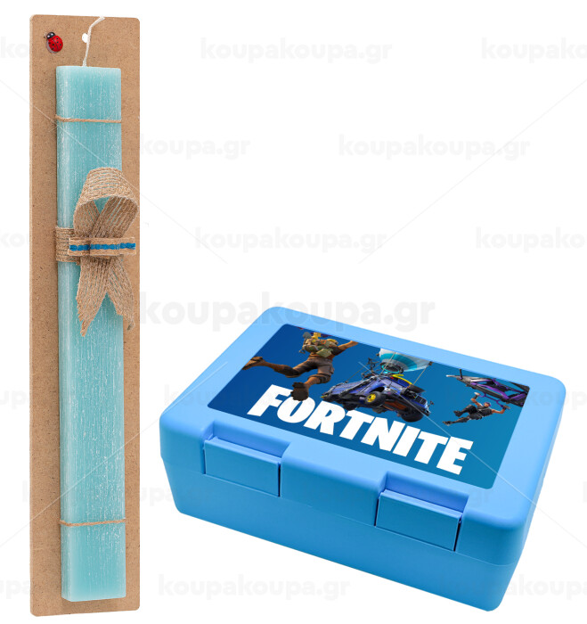 Fortnite Bus, Easter Set, children's snack container BLUE & Easter aromatic flat candle (30cm) (TURQUOISE)
