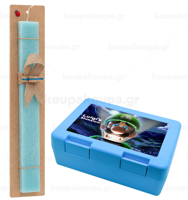 Luigi's Mansion, Easter Set, children's snack container BLUE & Easter aromatic flat candle (30cm) (TURQUOISE)