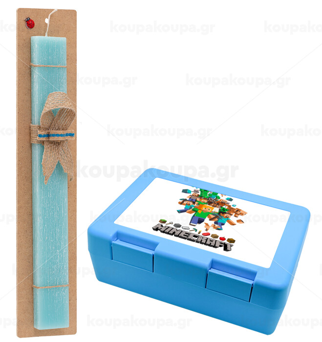 Minecraft adventure, Easter Set, children's snack container BLUE & Easter aromatic flat candle (30cm) (TURQUOISE)