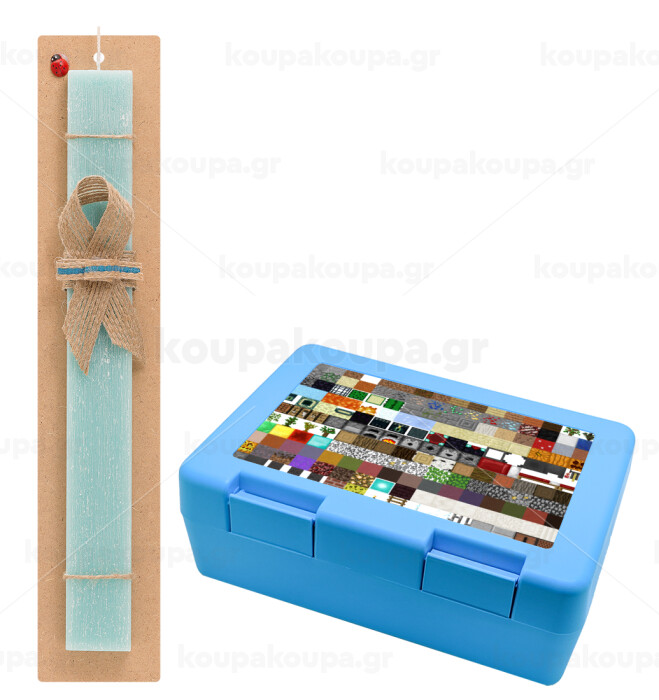 Minecraft blocks, Easter Set, children's snack container BLUE & Easter aromatic flat candle (30cm) (TURQUOISE)