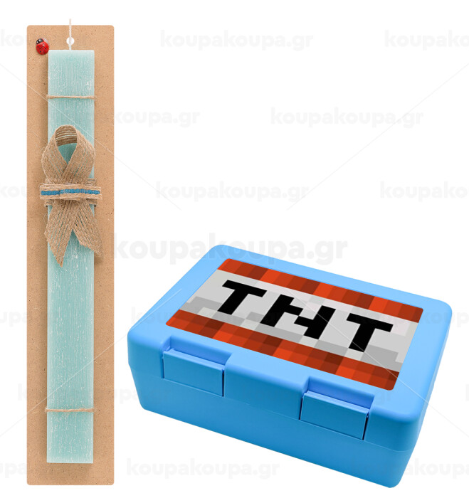 Minecraft TNT, Easter Set, children's snack container BLUE & Easter aromatic flat candle (30cm) (TURQUOISE)