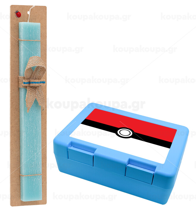 Pokemon ball, Easter Set, children's snack container BLUE & Easter aromatic flat candle (30cm) (TURQUOISE)