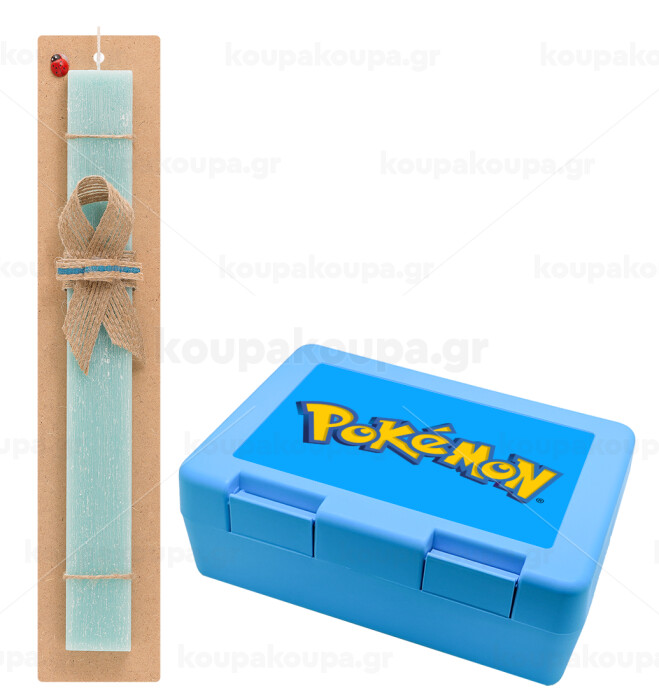 Pokemon, Easter Set, children's snack container BLUE & Easter aromatic flat candle (30cm) (TURQUOISE)