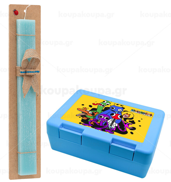 Rainbow friends, Easter Set, children's snack container BLUE & Easter aromatic flat candle (30cm) (TURQUOISE)