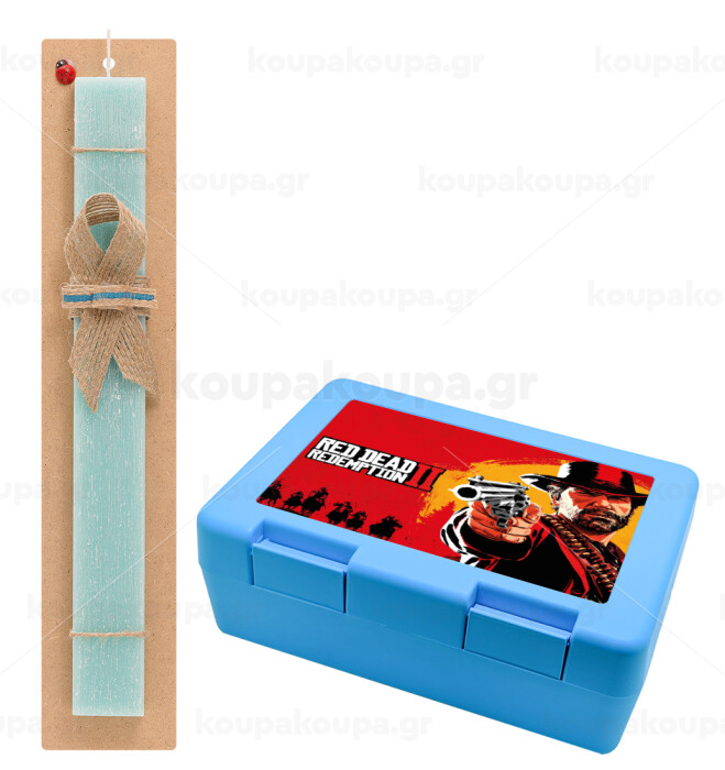 Red Dead Redemption 2, Easter Set, children's snack container BLUE & Easter aromatic flat candle (30cm) (TURQUOISE)
