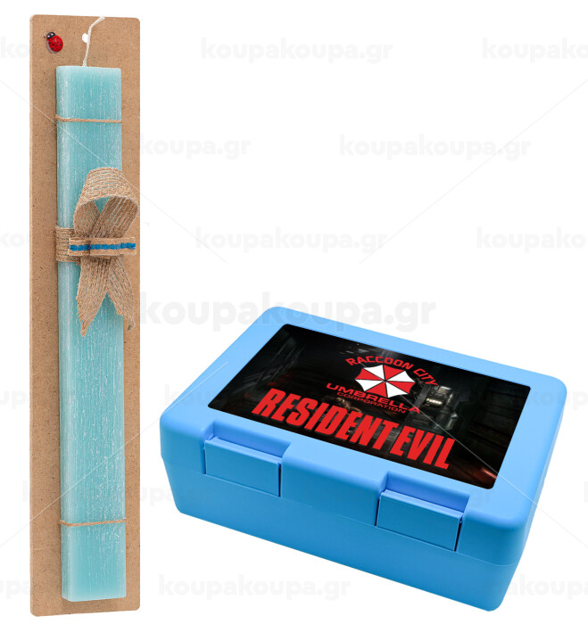 Resident Evil, Easter Set, children's snack container BLUE & Easter aromatic flat candle (30cm) (TURQUOISE)