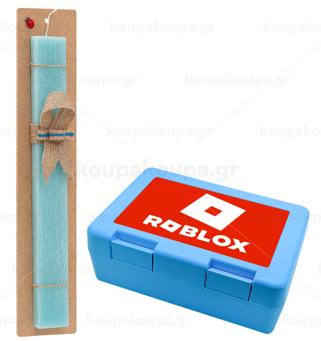 Roblox red, Easter Set, children's snack container BLUE & Easter aromatic flat candle (30cm) (TURQUOISE)