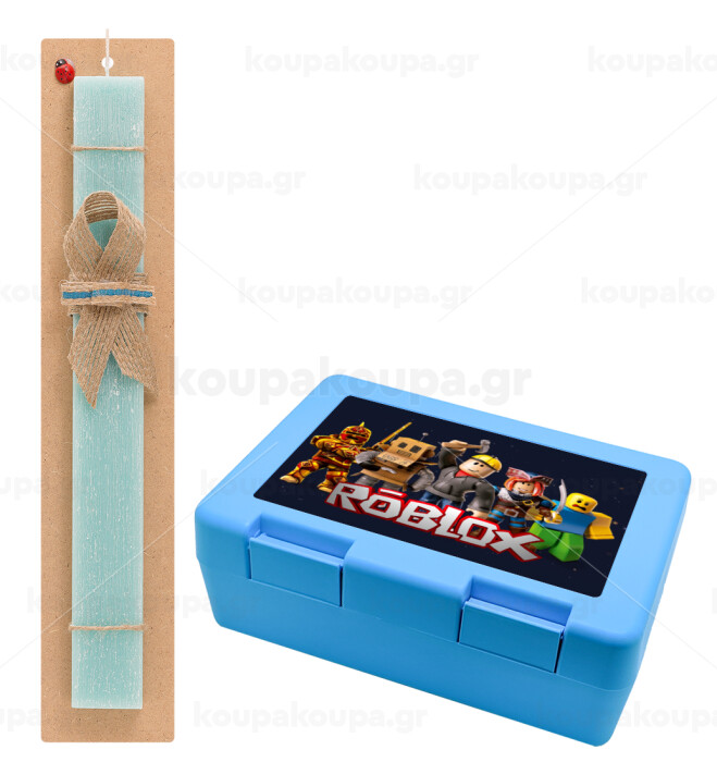 Roblox, Easter Set, children's snack container BLUE & Easter aromatic flat candle (30cm) (TURQUOISE)