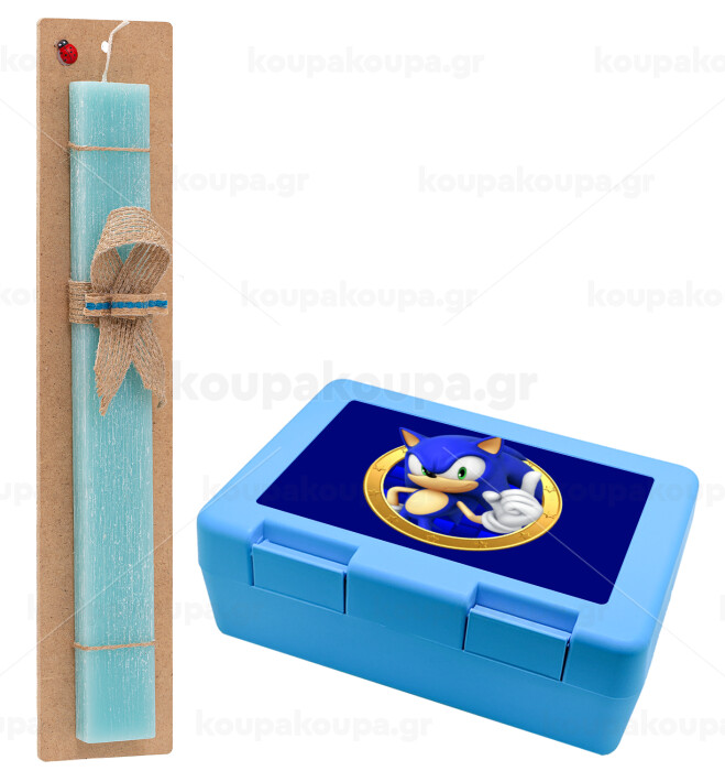 Sonic the hedgehog, Easter Set, children's snack container BLUE & Easter aromatic flat candle (30cm) (TURQUOISE)