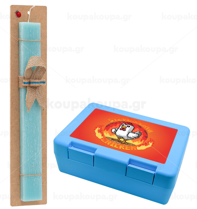 Steve's Lava Chicken, Easter Set, children's snack container BLUE & Easter aromatic flat candle (30cm) (TURQUOISE)