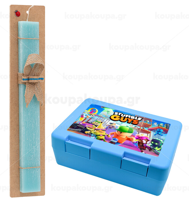 Stumble Guys, Easter Set, children's snack container BLUE & Easter aromatic flat candle (30cm) (TURQUOISE)