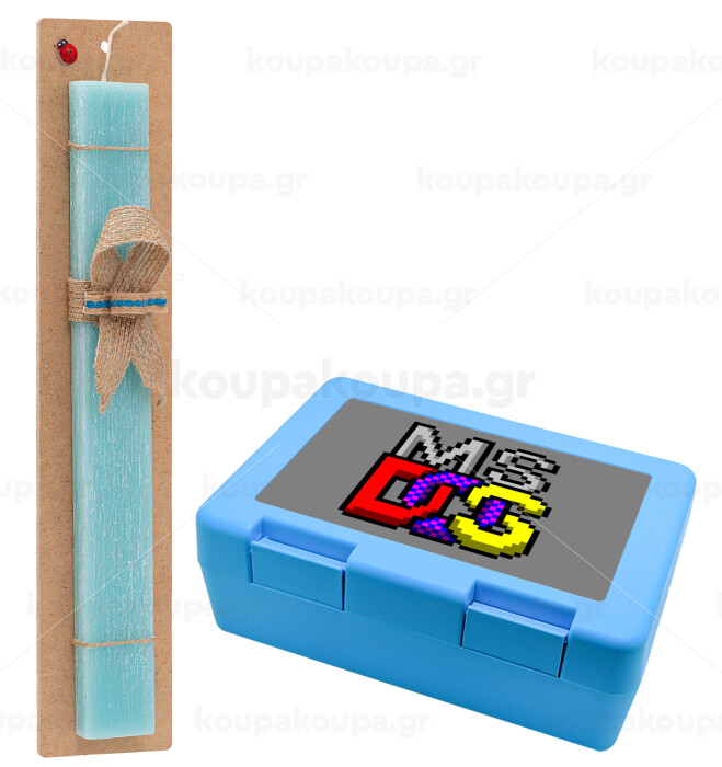 MsDos, Easter Set, children's snack container BLUE & Easter aromatic flat candle (30cm) (TURQUOISE)