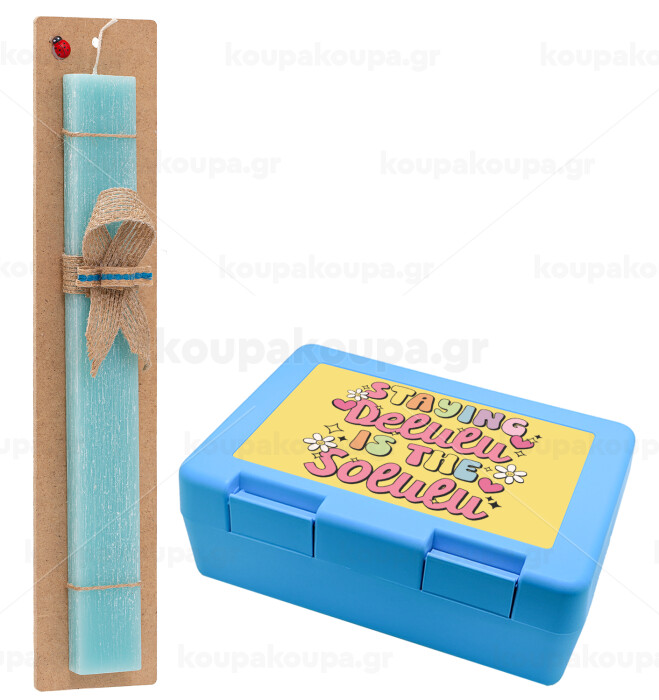 Delulu, Easter Set, children's snack container BLUE & Easter aromatic flat candle (30cm) (TURQUOISE)