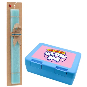 Why Don't You Blow Me Funny, Easter Set, children's snack container BLUE & Easter aromatic flat candle (30cm) (TURQUOISE)
