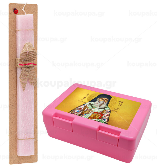 Saint Nektarios, Easter Set, children's snack container PINK & scented flat Easter candle (30cm) (PINK)