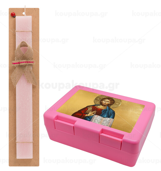 Jesus, Easter Set, children's snack container PINK & scented flat Easter candle (30cm) (PINK)
