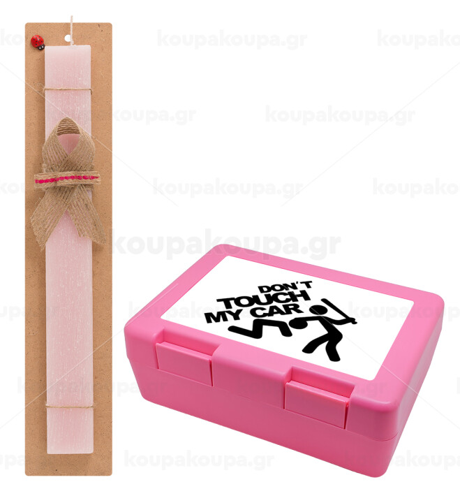 Don't touch my car, Easter Set, children's snack container PINK & scented flat Easter candle (30cm) (PINK)