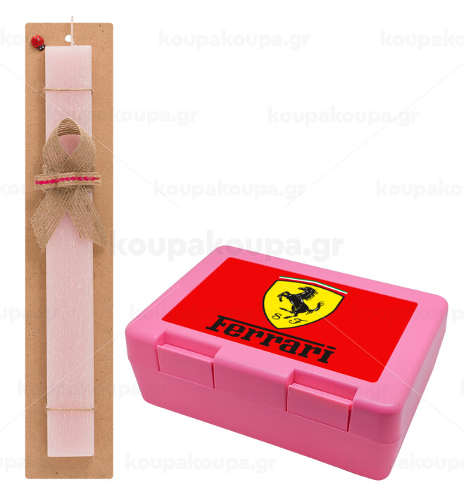 Ferrari S.p.A., Easter Set, children's snack container PINK & scented flat Easter candle (30cm) (PINK)