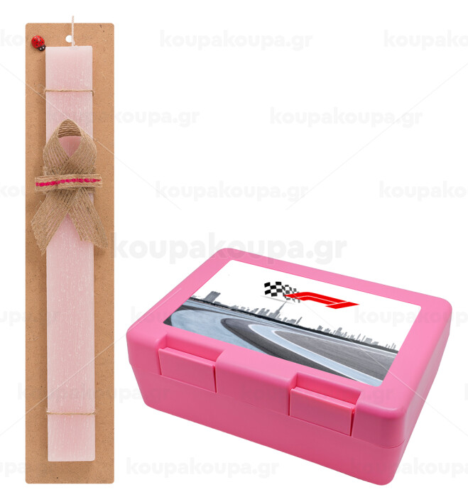Formula 1, Easter Set, children's snack container PINK & scented flat Easter candle (30cm) (PINK)