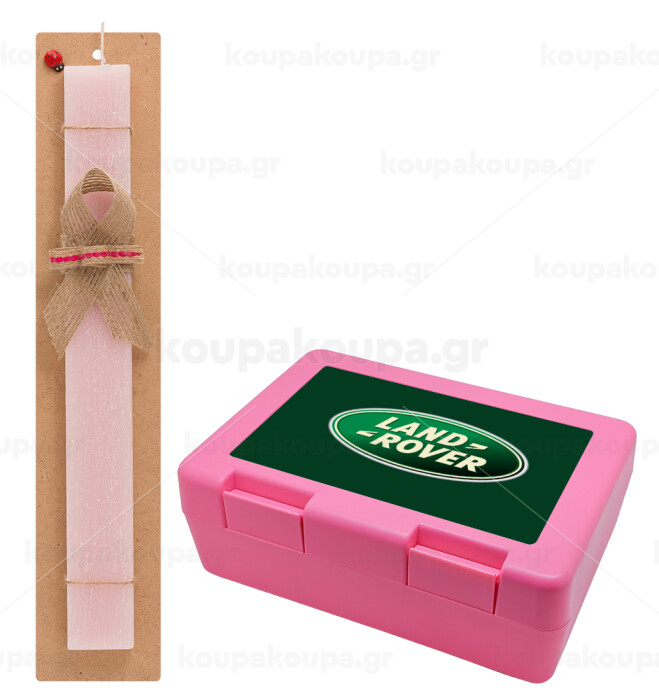 Land Rover, Easter Set, children's snack container PINK & scented flat Easter candle (30cm) (PINK)