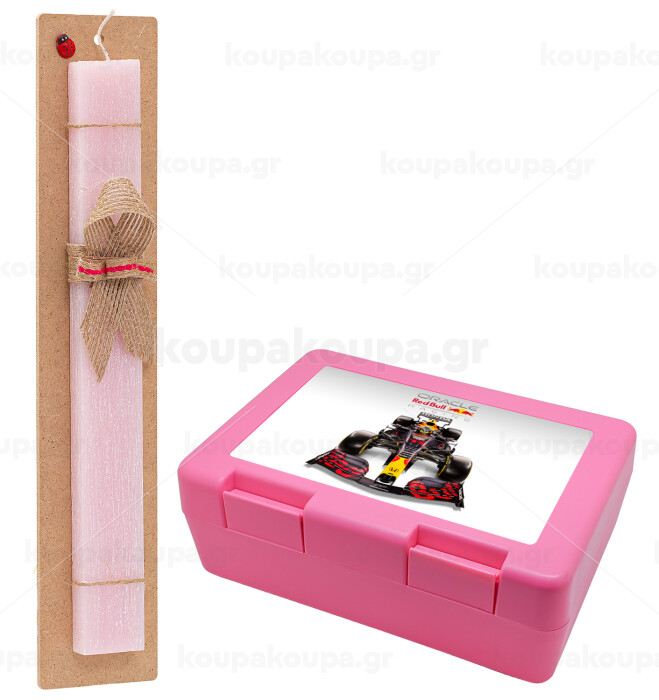 Redbull Racing Team F1, Easter Set, children's snack container PINK & scented flat Easter candle (30cm) (PINK)