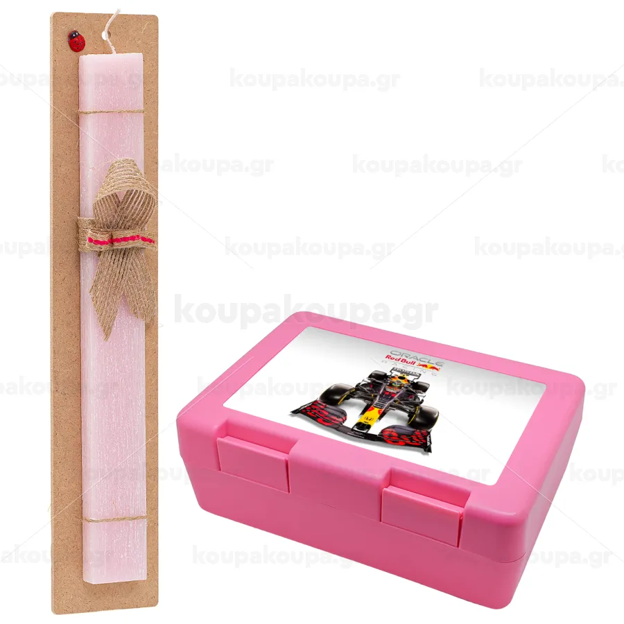 Redbull Racing Team F1, Easter Set, children's snack container PINK & scented flat Easter candle (30cm) (PINK)