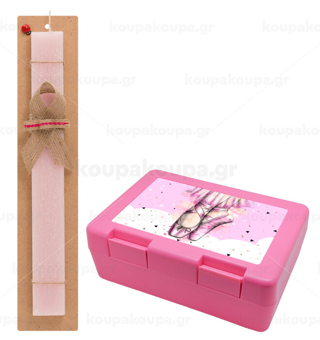 Ballerina shoes, Easter Set, children's snack container PINK & scented flat Easter candle (30cm) (PINK)