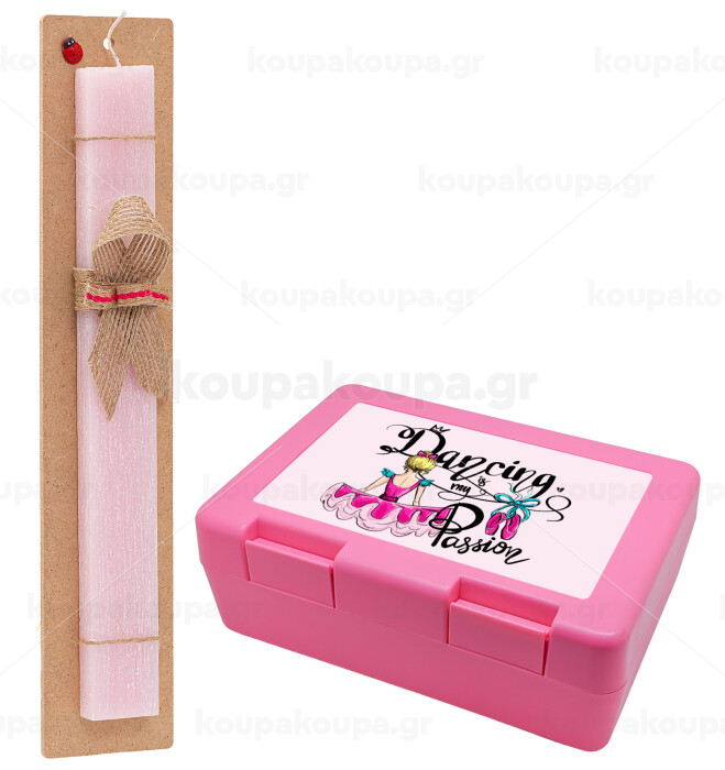 Dancing is my Passion, Easter Set, children's snack container PINK & scented flat Easter candle (30cm) (PINK)