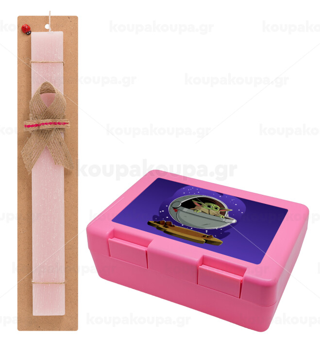 Baby Yoda mandalorian, Easter Set, children's snack container PINK & scented flat Easter candle (30cm) (PINK)