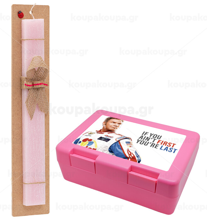 If You Ain't First You're Last Ricky Bobby, Talladega Nights, Easter Set, children's snack container PINK & scented flat Easter candle (30cm) (PINK)