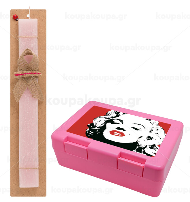 Merilin, Easter Set, children's snack container PINK & scented flat Easter candle (30cm) (PINK)