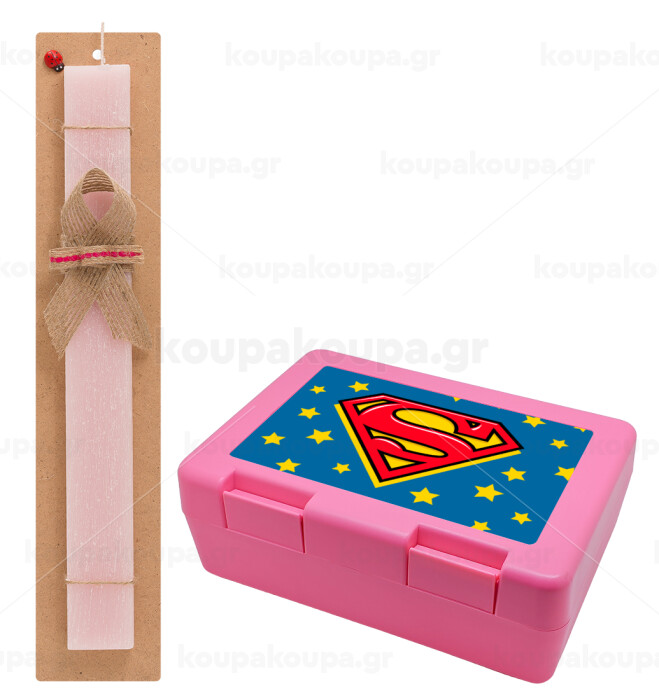 Superman Blue, Easter Set, children's snack container PINK & scented flat Easter candle (30cm) (PINK)