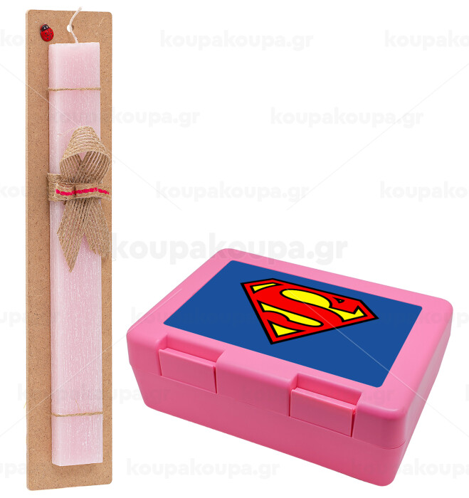 Superman vintage, Easter Set, children's snack container PINK & scented flat Easter candle (30cm) (PINK)