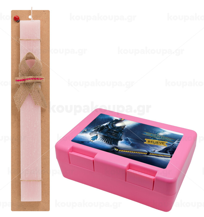 The Polar Express, Easter Set, children's snack container PINK & scented flat Easter candle (30cm) (PINK)