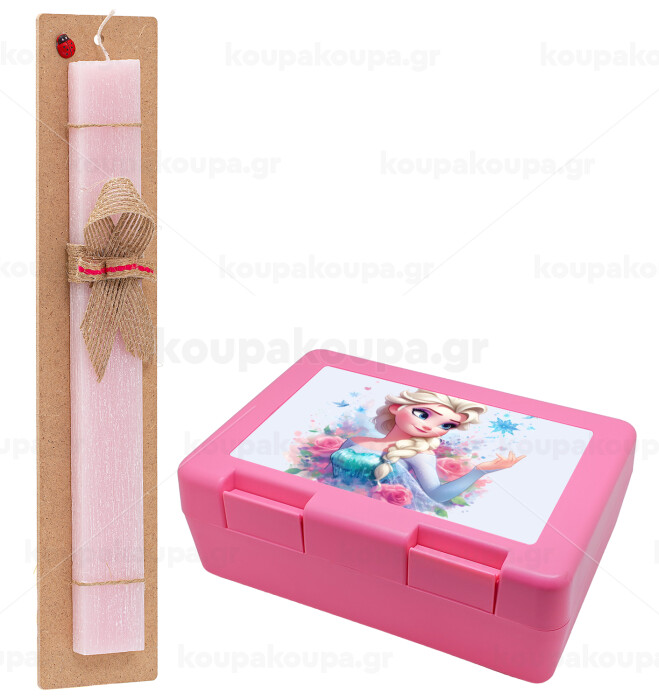 Elsa Princess, Easter Set, children's snack container PINK & scented flat Easter candle (30cm) (PINK)