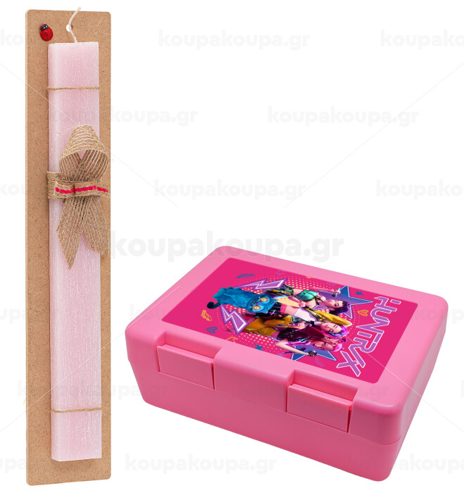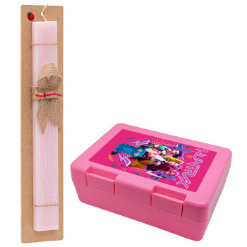 Huntrix K-pop series, Easter Set, children's snack container PINK & scented flat Easter candle (30cm) (PINK)