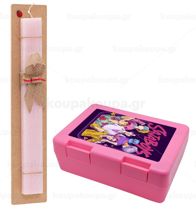 Huntrix Saja Boys, Easter Set, children's snack container PINK & scented flat Easter candle (30cm) (PINK)