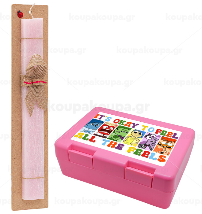 Inside Out It's Okay To Feel All The Feels , Easter Set, children's snack container PINK & scented flat Easter candle (30cm) (PINK)