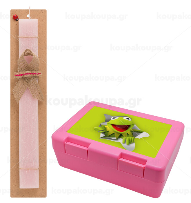 Kermit the frog, Easter Set, children's snack container PINK & scented flat Easter candle (30cm) (PINK)