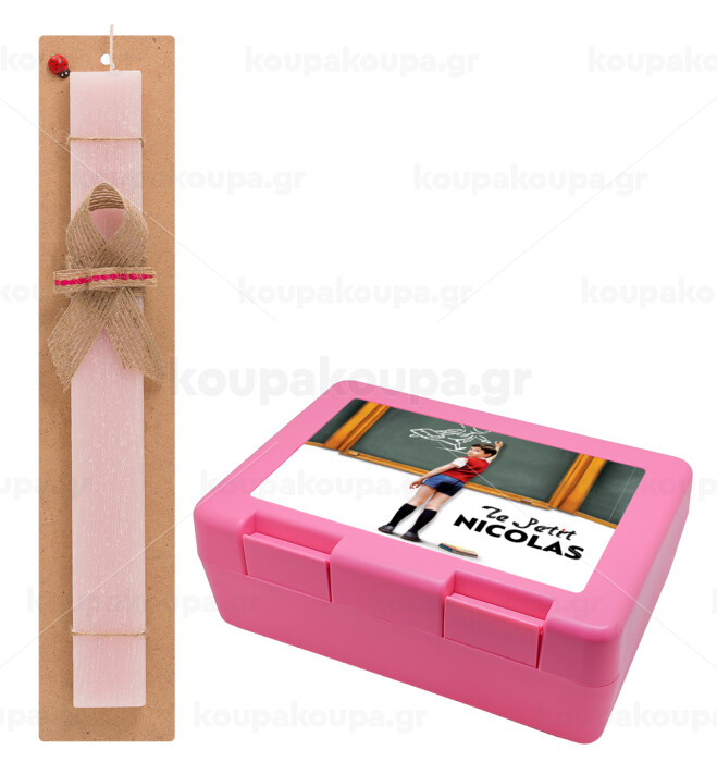 Le Petit Nicolas, Easter Set, children's snack container PINK & scented flat Easter candle (30cm) (PINK)