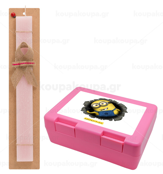 Minions hi, Easter Set, children's snack container PINK & scented flat Easter candle (30cm) (PINK)