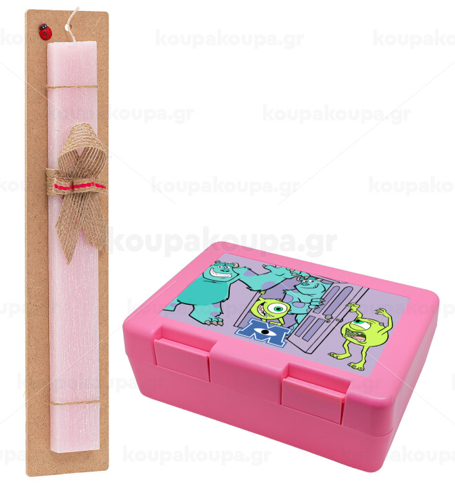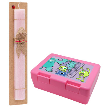 Monster inc, Easter Set, children's snack container PINK & scented flat Easter candle (30cm) (PINK)