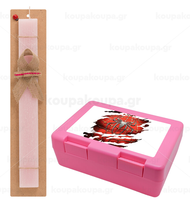 Spiderman cracked, Easter Set, children's snack container PINK & scented flat Easter candle (30cm) (PINK)