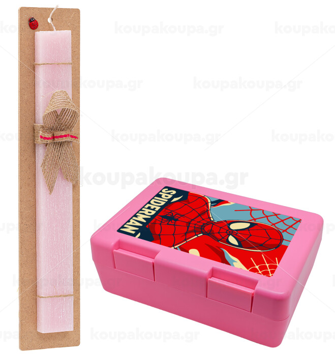 Spiderman kid, Easter Set, children's snack container PINK & scented flat Easter candle (30cm) (PINK)