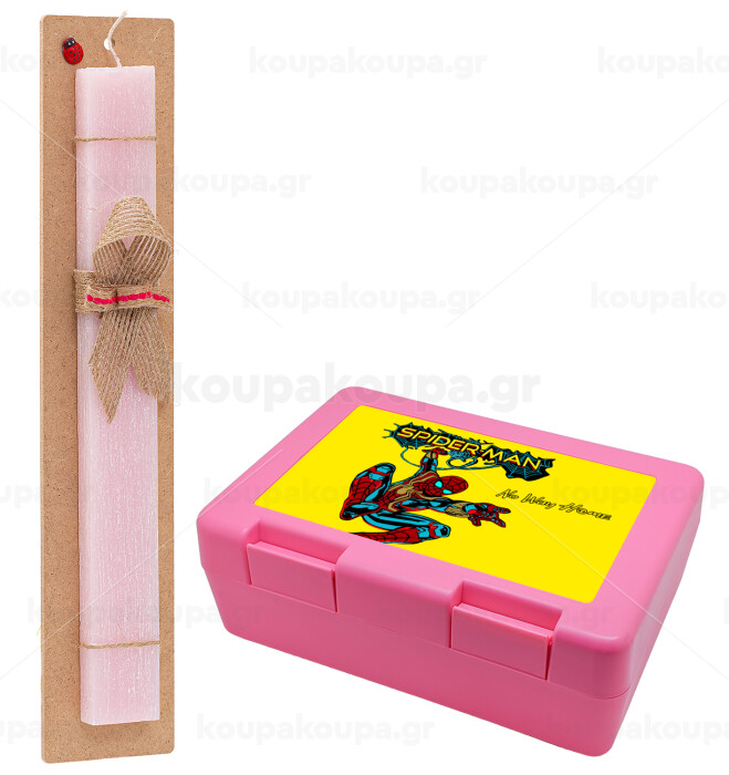 Spiderman no way home, Easter Set, children's snack container PINK & scented flat Easter candle (30cm) (PINK)