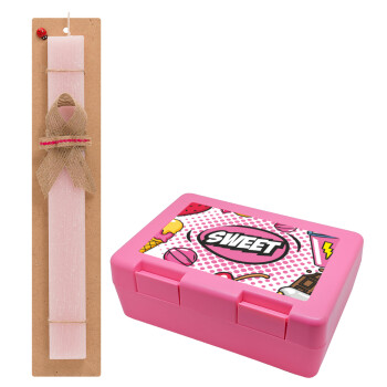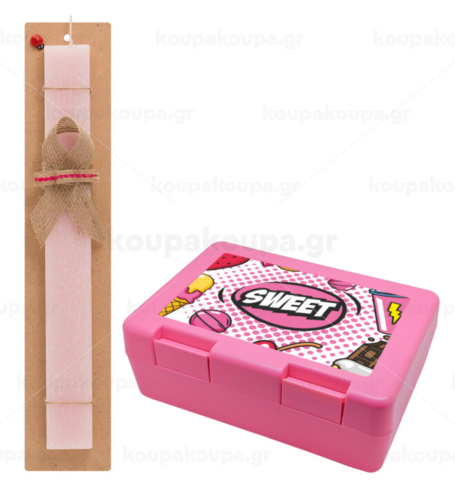 SWEET, Easter Set, children's snack container PINK & scented flat Easter candle (30cm) (PINK)