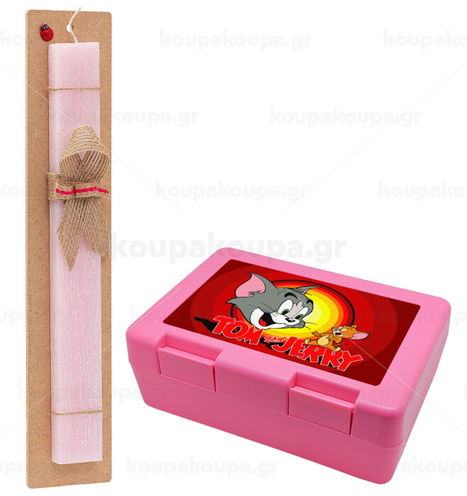 Tom and Jerry, Easter Set, children's snack container PINK & scented flat Easter candle (30cm) (PINK)