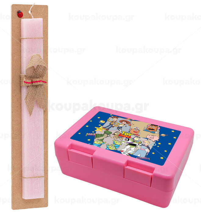 toystory characters, Easter Set, children's snack container PINK & scented flat Easter candle (30cm) (PINK)