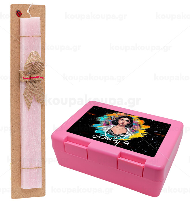 Dua lipa, Easter Set, children's snack container PINK & scented flat Easter candle (30cm) (PINK)